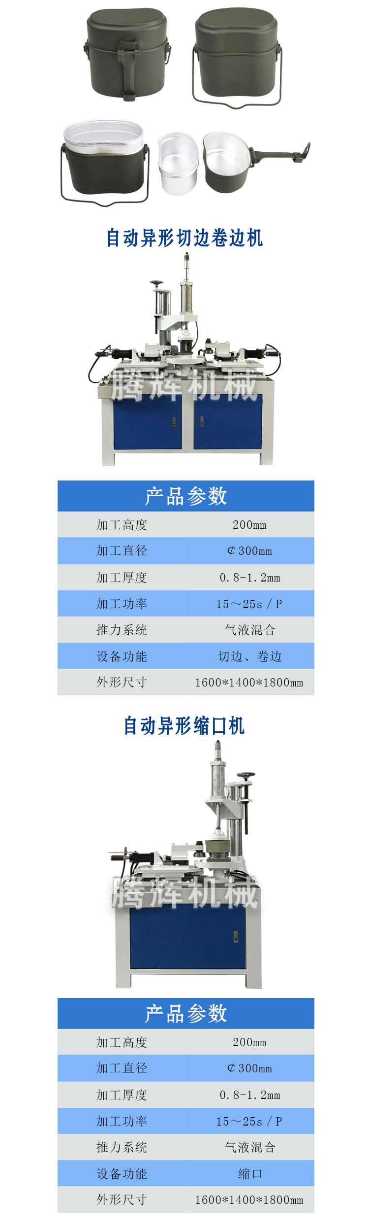 飯盒是常用到的餐具用品,如今飯盒多種多樣的,有各種材質(zhì)和材料,本文專門介紹德式腰形飯盒的加工設(shè)備,生產(chǎn)流程主要切邊、縮口、卷邊的幾個步驟。(公司根據(jù)客戶需求,為客戶量身定制適合的設(shè)備,歡迎新老客戶咨詢了解)